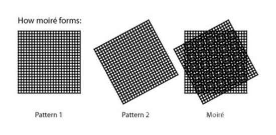 摩尔纹比较常见的解释就是在一些数码相机、扫描仪等设备的感光元件上,在拍摄、扫描的过程中受到了高频干扰,而在图片上出现了彩色和形状不规律的条纹。原理就是在两个频率接近的两个频率接近的等幅正弦波叠加,合成信号的幅度将按照两个频率之差发生变化。如果在感光元件里面像素的空间频率与影像中条纹的空间频率接近,就很容易会产生摩尔纹。如果想要在硬件层面上避免这些摩尔纹,就应该要使用镜头分辨率远小于感光元件的空间频率即可避免摩尔纹的产生。